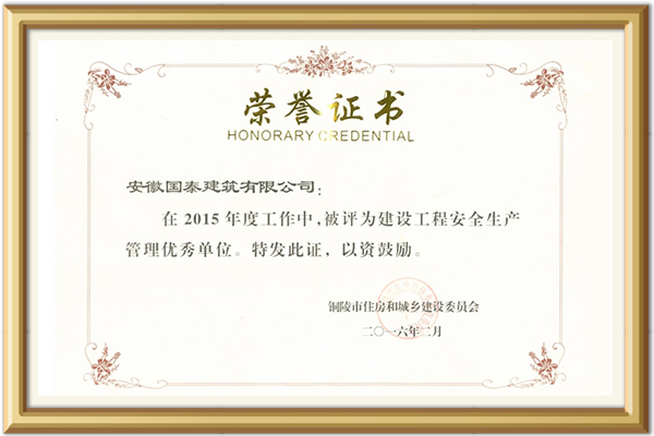 15年建設(shè)工程安全生產(chǎn)管理優(yōu)秀單位