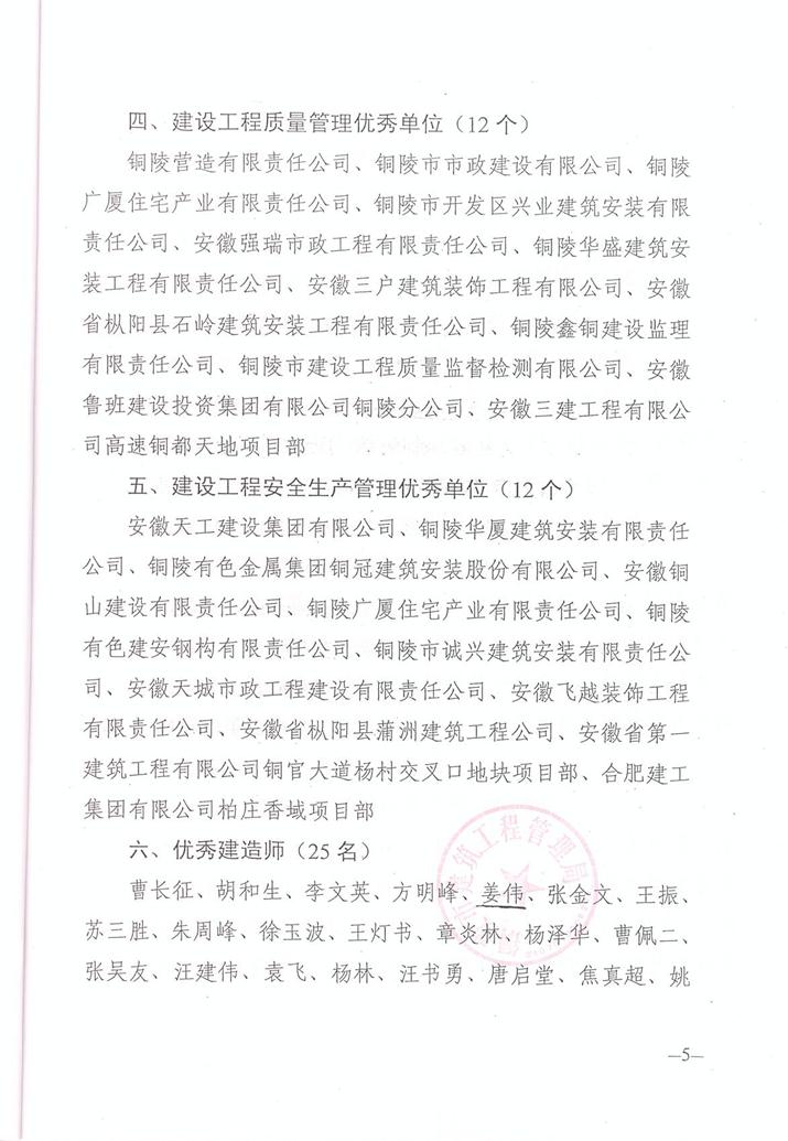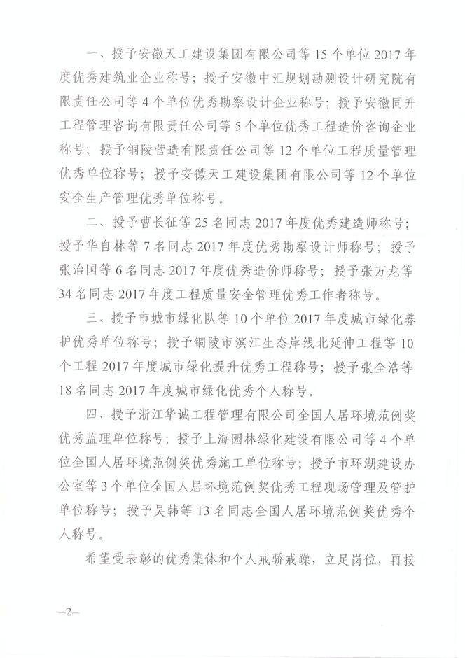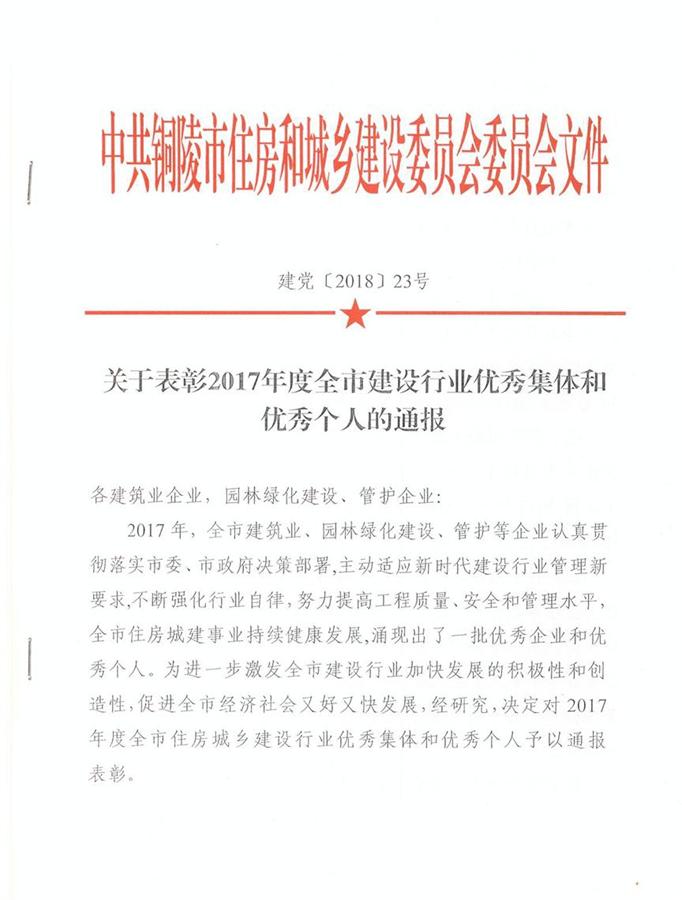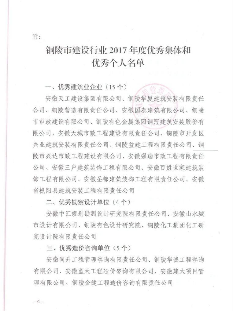 安徽國泰建筑有限公司榮獲2017年度“優(yōu)秀建筑業(yè)”企業(yè)稱號