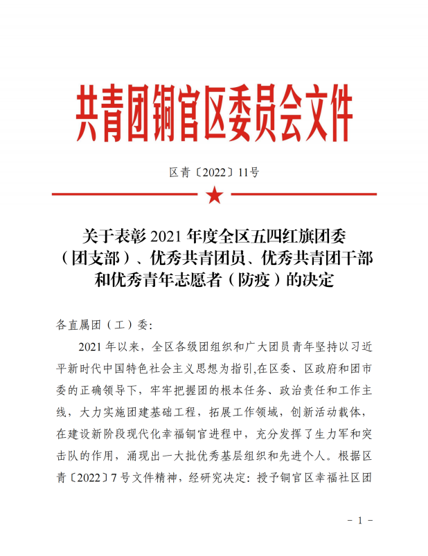 集團(tuán)團(tuán)支部榮獲銅官區(qū)2021年度“五四紅旗團(tuán)支部”榮譽(yù)稱號