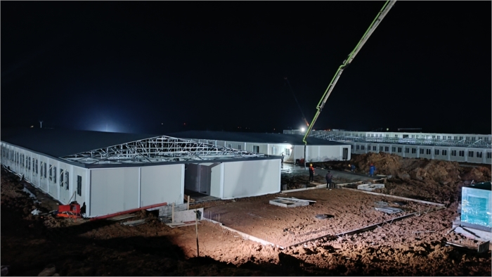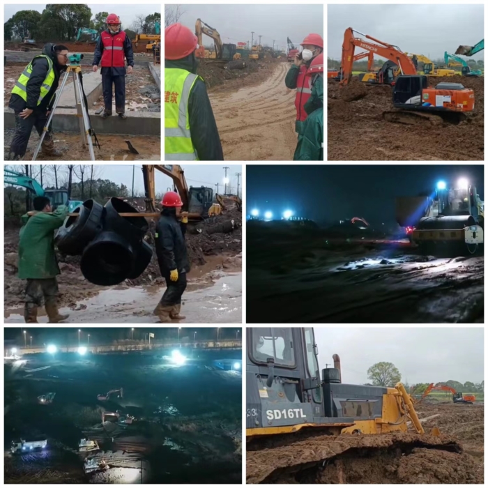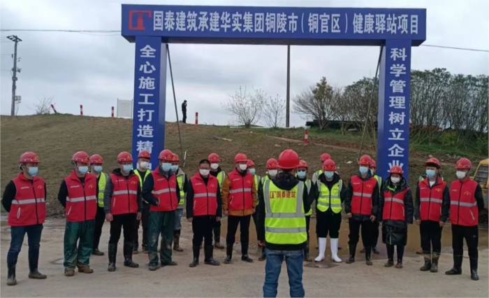 該項目工程量大、功能標準要求高、建設(shè)工期短。疫情就是命令,防控就是責任,在接到任務(wù)后,國泰建筑舉集團之力,調(diào)集所有精兵強將及施工管理人員18名、后勤保障人員9名,其中中共黨員16名?,F(xiàn)場施工總?cè)藬?shù)達到385名,各分項施工隊伍11個。3月15日進駐施工現(xiàn)場,項目開工時,正面對疫情肆虐,銅陵封城,交通管制情況下,機械物料、設(shè)備短缺,人員組織困難等諸多的壓力,公司董事長張自洲親臨現(xiàn)場自掛帥作戰(zhàn)。在工程施工出現(xiàn)困難時,果斷成立“作戰(zhàn)指揮部”和黨員突擊隊,實行12小時輪班制,為了將每個小組的施工節(jié)奏步調(diào)一致,效能發(fā)揮到最大化,堅持每天召開2次現(xiàn)場協(xié)調(diào)會,統(tǒng)一部署,統(tǒng)一指揮,做好每道工序符合標準流程;在疫情兇猛蔓延,春季寒潮夾雨的情況下,現(xiàn)場400多名工人的后勤安全保障及防疫工作壓力驟增,國泰建筑沒有退縮,知難而上,不計成本,動用一切資源和力量,購買防凍棉衣、棉被、雨靴、雨衣、消毒水、N95口罩等、并科學規(guī)劃施工場地防疫工作區(qū)域,合理設(shè)置進出口,施工現(xiàn)場和辦公區(qū)域不間段消殺,人員實名制登記、掃碼(綠碼)進場,每人每天配發(fā)3只口罩及免酒精擦拭紙,為現(xiàn)場施工防疫工作建立起一道筑牢的防火墻。