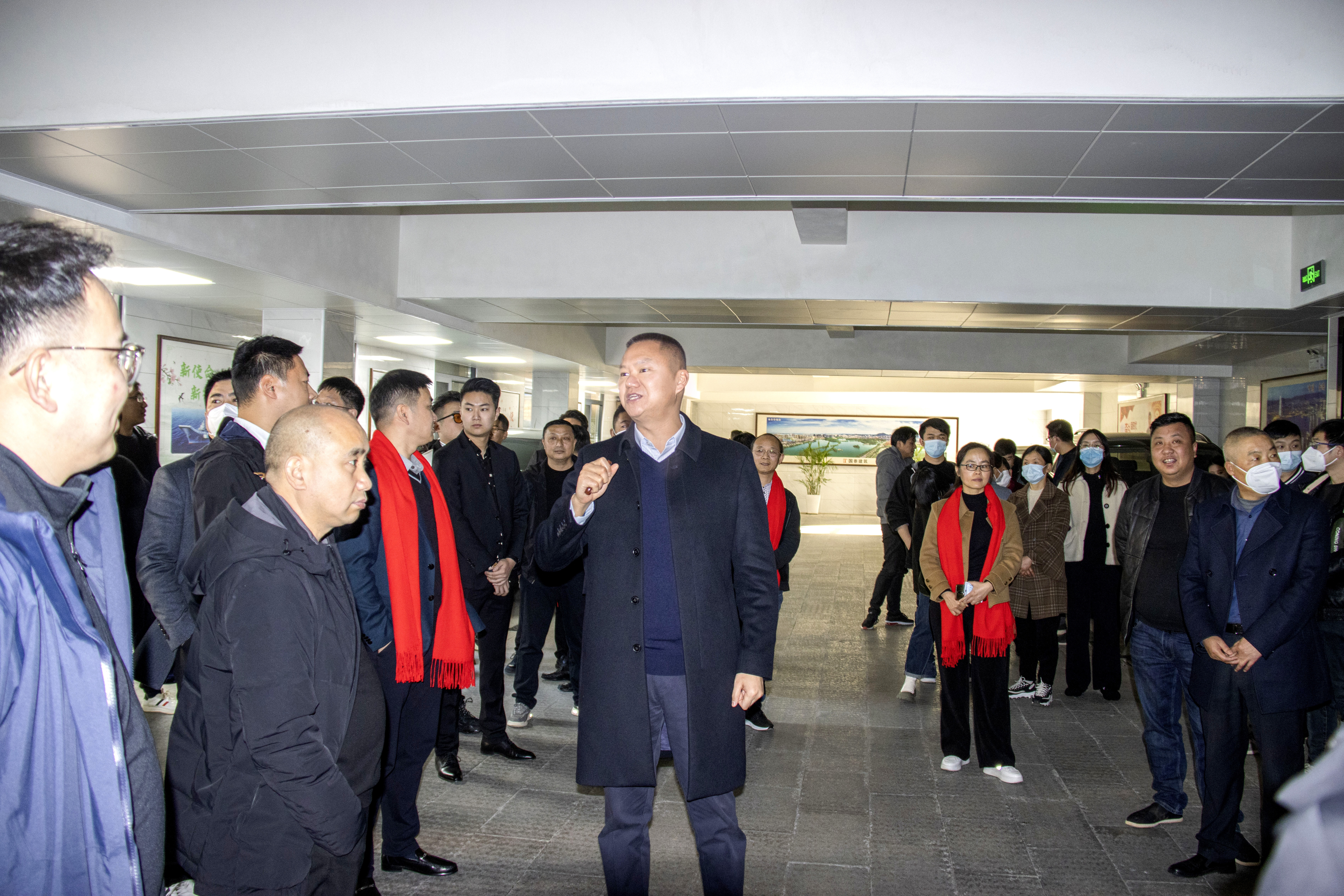 張自州帶領(lǐng)項(xiàng)目執(zhí)行經(jīng)理參觀公司發(fā)展歷程展廊