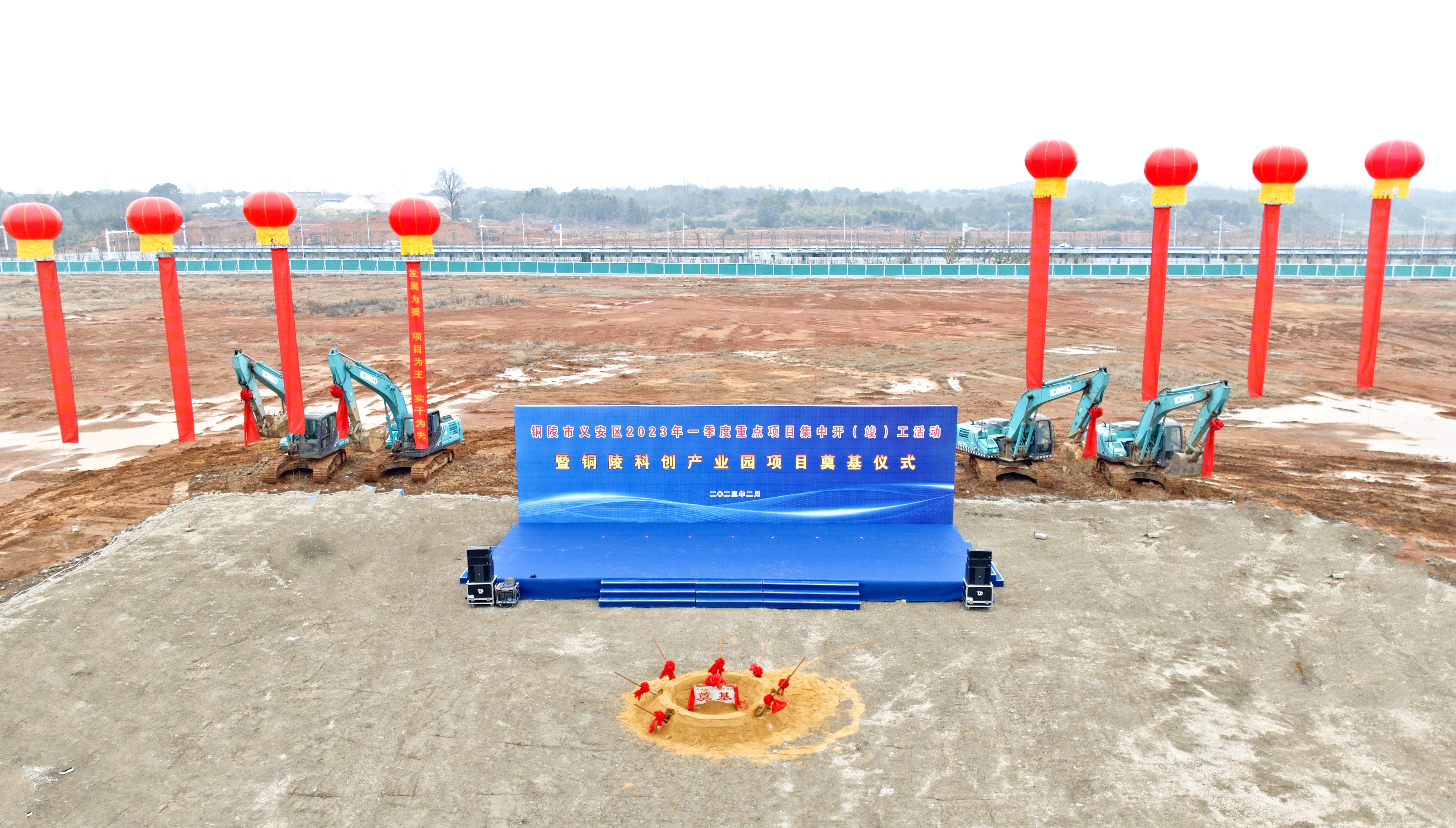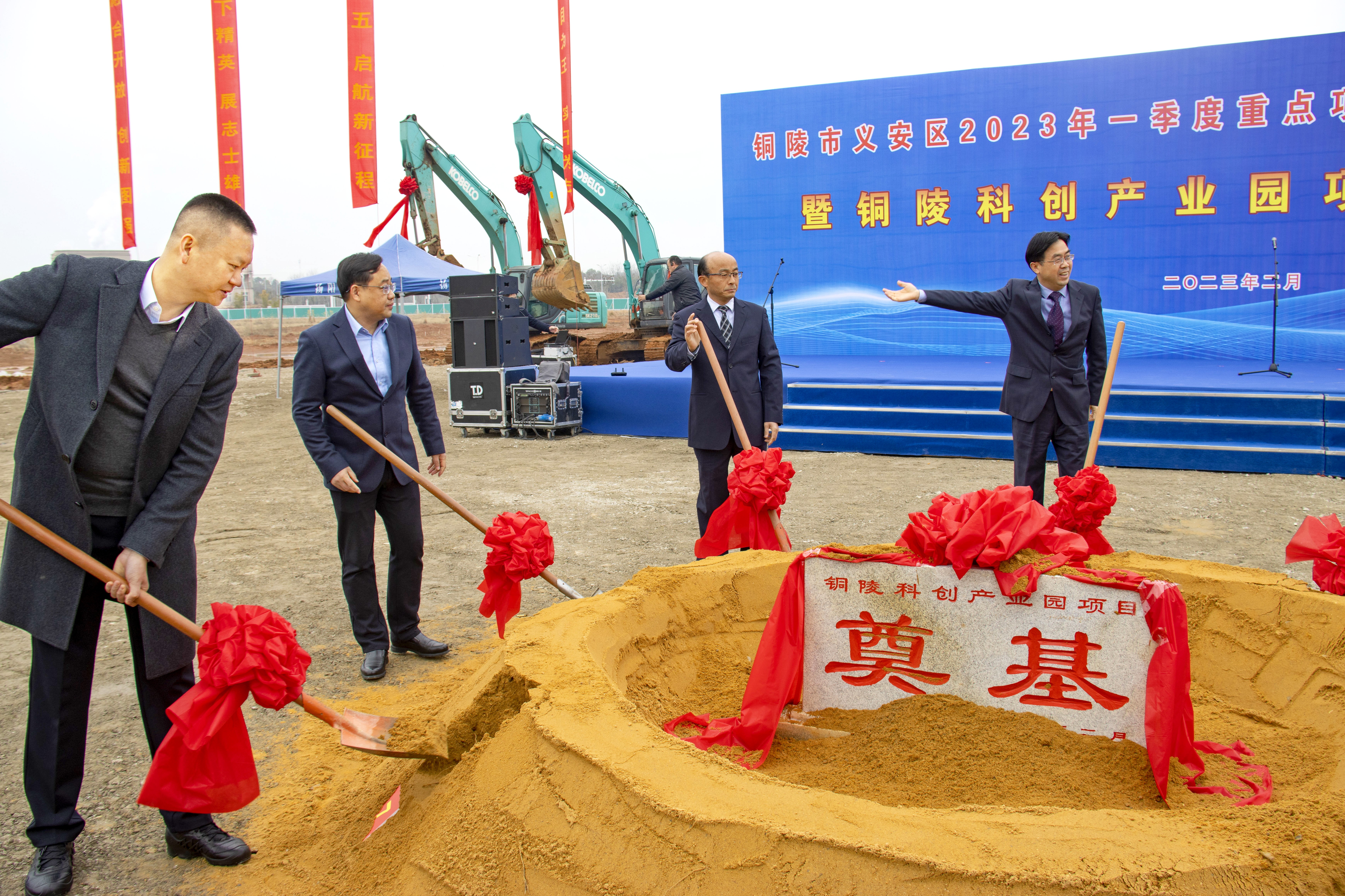 2023年2月18日上午8時(shí)28分,銅陵市義安區(qū)2023年一季度重點(diǎn)項(xiàng)目集中開(竣)工活動(dòng)暨銅陵科創(chuàng)產(chǎn)業(yè)園項(xiàng)目奠基儀式在義安經(jīng)開區(qū)銅陵科創(chuàng)產(chǎn)業(yè)園項(xiàng)目現(xiàn)場(chǎng)成功舉行。也標(biāo)志著國(guó)泰建筑成立以來承建的最高標(biāo)額項(xiàng)目正式開工。銅陵市人大常委會(huì)副主任、義安區(qū)委書記姚貴平、義安區(qū)委副書記、區(qū)長(zhǎng)方小雄、銅陵交投集團(tuán)董事長(zhǎng)何成龍、國(guó)泰建筑董事長(zhǎng)張自州以及項(xiàng)目合作單位成員等共同出席了本次奠基儀式。