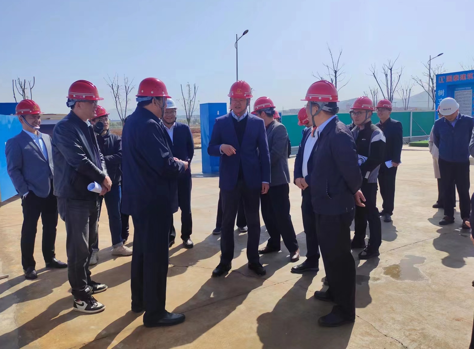 考察過程中,丁書記對國泰建筑按時推進項目建設,一手抓文明施工,一手抓穩(wěn)推進度,積極配合監(jiān)督單位、業(yè)主單位各項指示要求,給予了高度肯定;同時希望我司認真貫徹二十大精神,不忘初心、牢記使命,發(fā)揚優(yōu)秀建筑企業(yè)模范帶頭作用,為建設銅陵市經濟高質量發(fā)展做出貢獻。