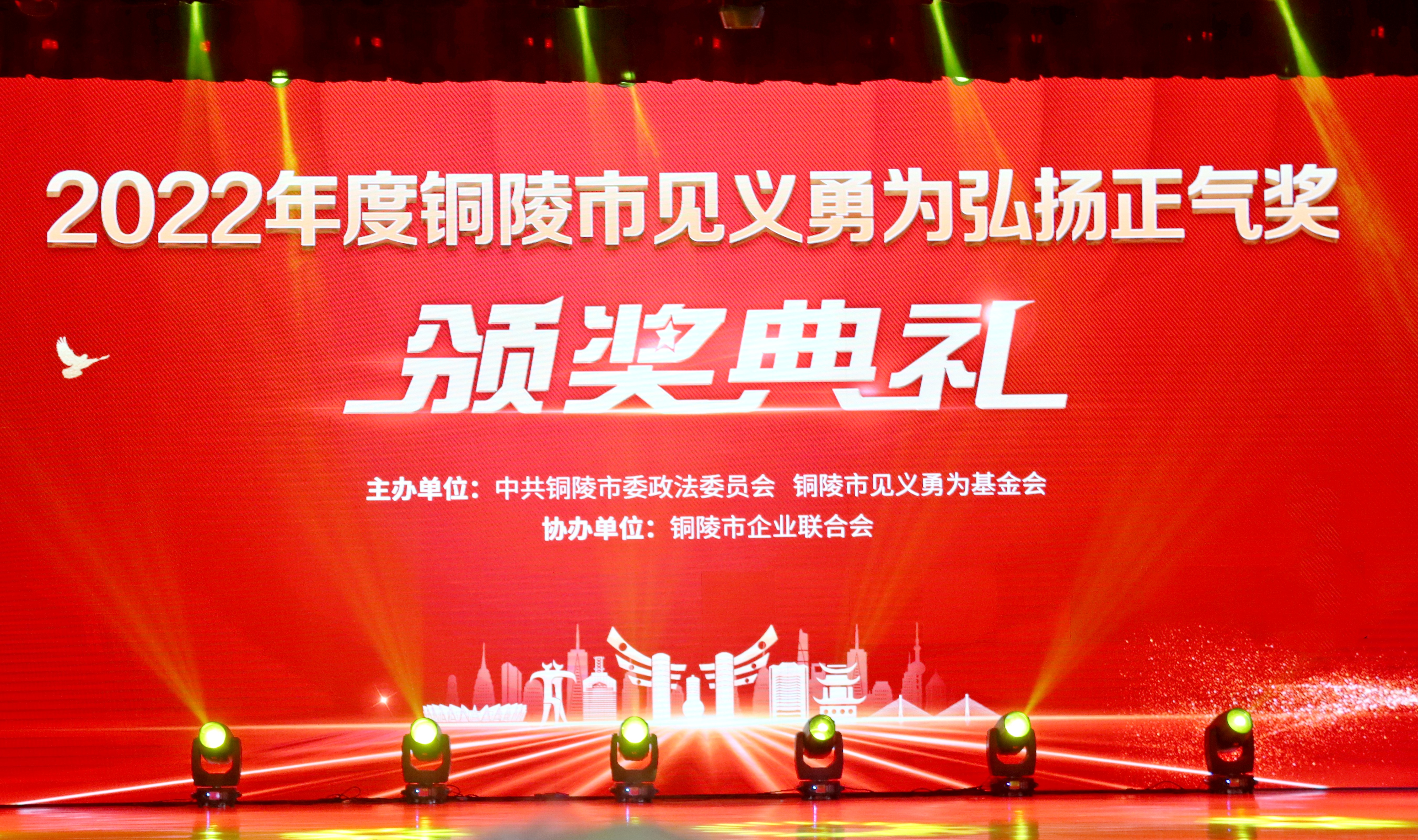 2023年5月9日下午,中共銅陵市委政法委員會(huì)、銅陵市見(jiàn)義勇為基金會(huì)在市委黨校學(xué)術(shù)報(bào)告廳舉行2022年度銅陵市見(jiàn)義勇為弘揚(yáng)正氣獎(jiǎng)?lì)C獎(jiǎng)典禮。市委書(shū)記丁純對(duì)全市政法工作和見(jiàn)義勇為事業(yè)發(fā)展作出批示。省見(jiàn)義勇為基金會(huì)副理事長(zhǎng)洪禹候,省委政法委二級(jí)巡視員謝誠(chéng)勇,市委常委、政法委書(shū)記昌紅梅,老干部唐世定,市領(lǐng)導(dǎo)陳元中、王勇、紀(jì)紅兵、王友貴,市中級(jí)法院院長(zhǎng)李德文,市檢察院檢察長(zhǎng)楊開(kāi)江等出席活動(dòng)。國(guó)泰建筑董事長(zhǎng)張自州應(yīng)邀參加典禮,深入學(xué)習(xí)習(xí)近平總書(shū)記關(guān)于加強(qiáng)見(jiàn)義勇為工作的重要指示精神,了解銅陵市見(jiàn)義勇為先進(jìn)事跡。