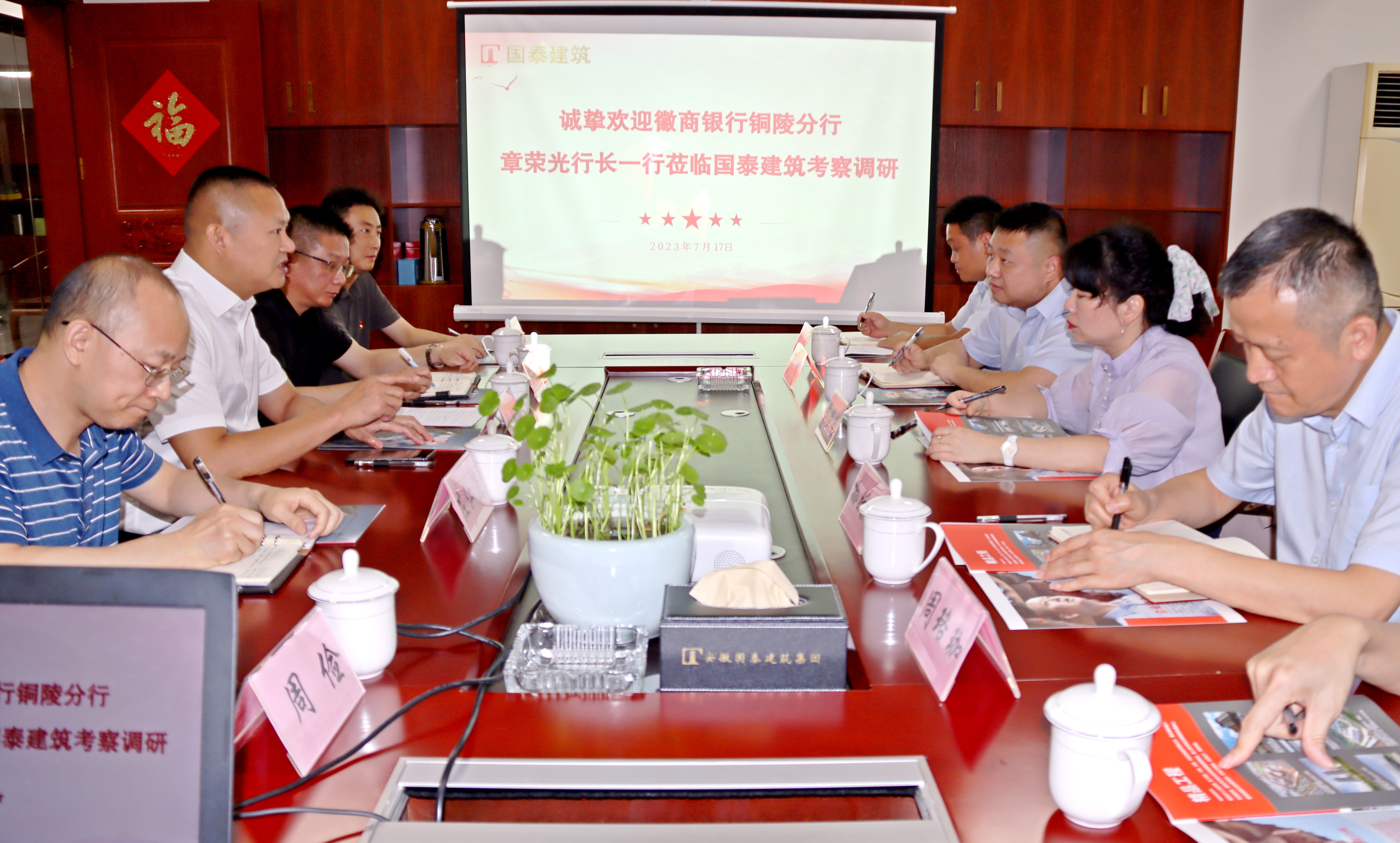 2023年7月17日下午,徽商銀行銅陵分行與國(guó)泰建筑簽約授信儀式在國(guó)泰建筑集團(tuán)總部隆重舉行。徽商銀行銅陵分行副行長(zhǎng)章榮光出席儀式并講話,國(guó)泰建筑董事長(zhǎng)張自州應(yīng)邀參加。徽商銀行銅陵分行、徽商銀行銀宵支行相關(guān)領(lǐng)導(dǎo)及國(guó)泰建筑財(cái)務(wù)部負(fù)責(zé)人出席并見(jiàn)證儀式。
