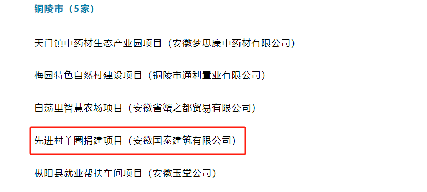 2023年度安徽省“萬(wàn)企興萬(wàn)村”行動(dòng)典型項(xiàng)目由省內(nèi)16個(gè)市100家企業(yè)共同助力完成,銅陵市5家企業(yè)中,國(guó)泰建筑是唯一一家建筑業(yè)企業(yè)助力此次行動(dòng)。這是安徽省政府對(duì)國(guó)泰建筑承擔(dān)社會(huì)責(zé)任的肯定和激勵(lì)。