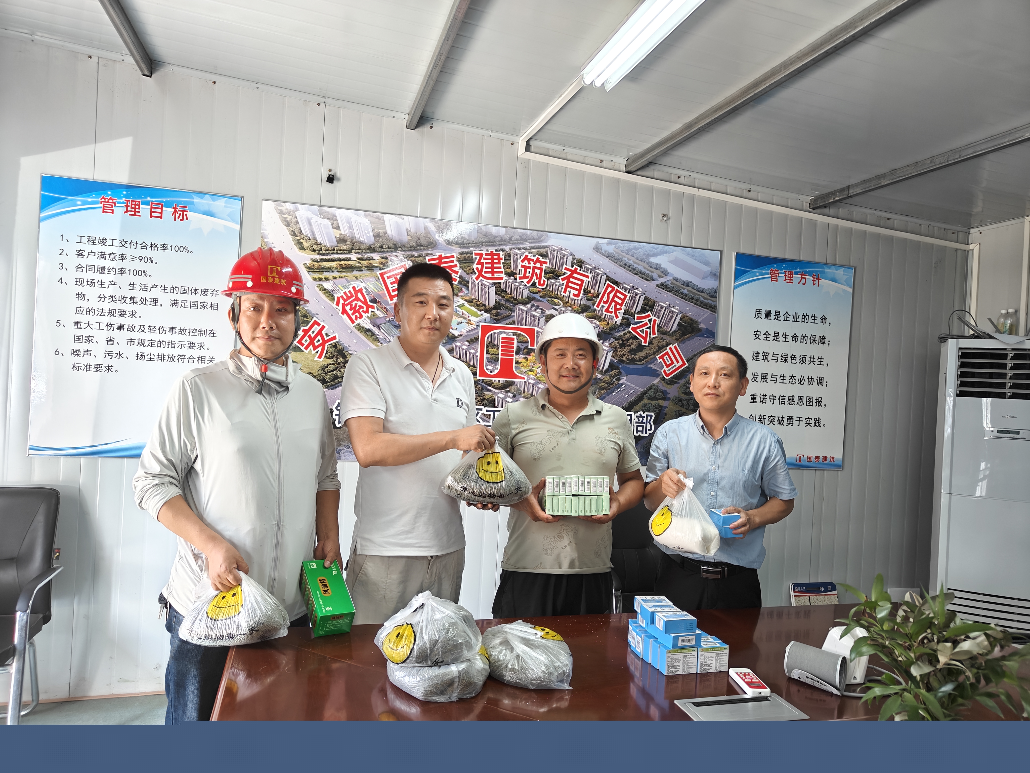炎炎烈日下,氣溫持續(xù)攀升,建筑工地上的工人們依然辛勤勞作。為了保障他們的身體健康和工作安全,國泰建筑精心準(zhǔn)備了大量的防暑降溫物資,包括綠豆、白糖、十滴水、藿香正氣水、人丹等。
