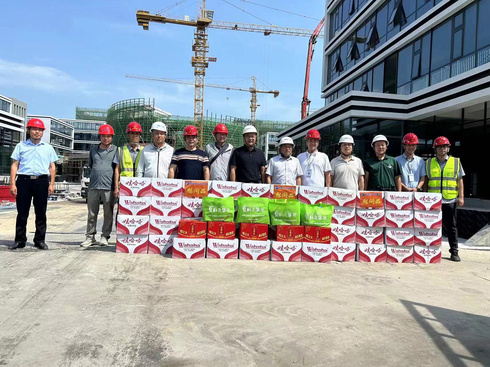 在炎炎夏日,驕陽似火,科創(chuàng)園EPC項目施工現(xiàn)場依舊熱火朝天。為了向奮戰(zhàn)在一線的員工們表達關(guān)心與敬意,7月23日,交投公司總經(jīng)理龍道寧親自帶隊前往科創(chuàng)園EPC項目工地,開展了一場溫馨的夏日送清涼活動,國泰建筑總經(jīng)理張四兵攜相關(guān)管理人員全程陪同。