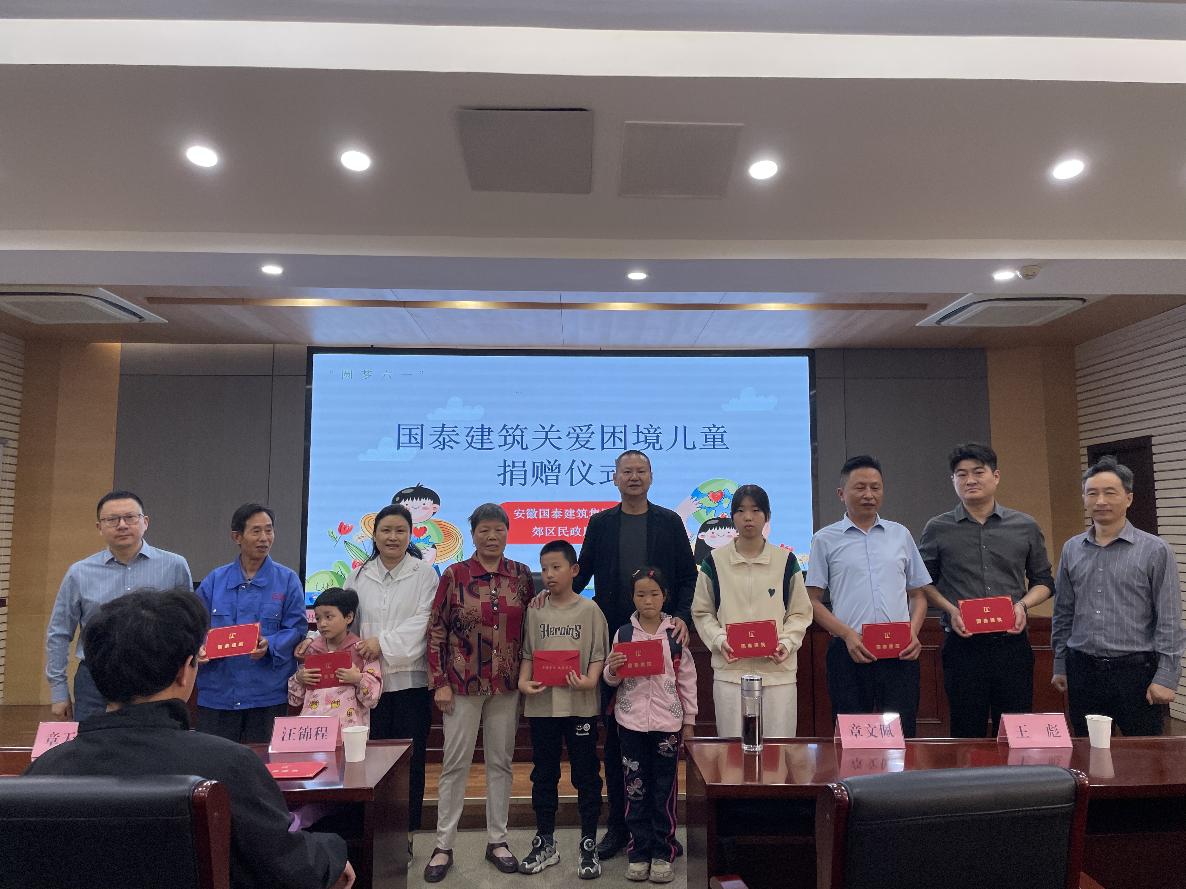 捐贈(zèng)儀式上,張自州董事長的致辭中說:國泰建筑致力于企業(yè)發(fā)展,同時(shí)不忘初心,牢記社會(huì)責(zé)任。通過經(jīng)營好企業(yè)和參與社會(huì)公益,積極回報(bào)社會(huì)各界長期以來對公司的關(guān)心和支持。幫助困境兒童,也是我們國泰建筑全體員工共同的心愿。