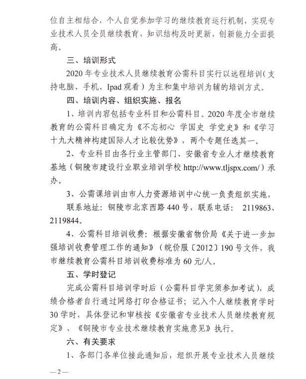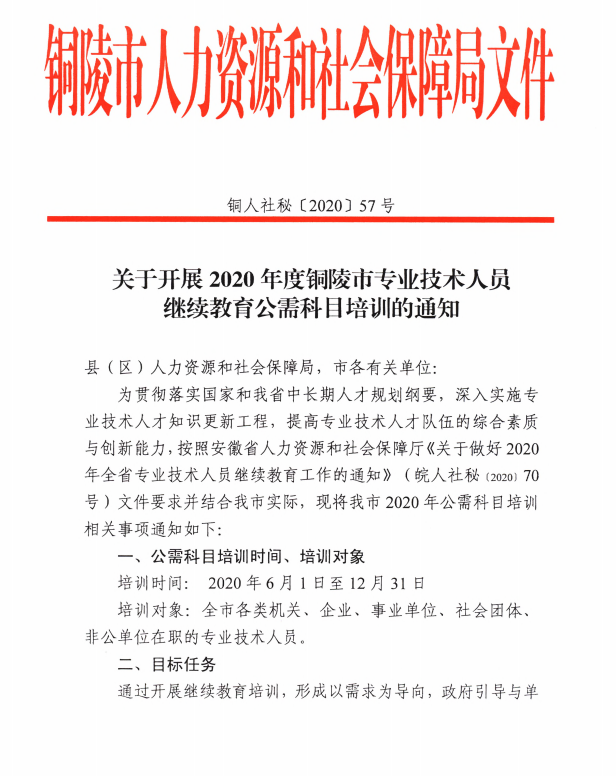關(guān)于開展2020年度銅陵市專業(yè)技術(shù)人員繼續(xù)教育公需科目培訓(xùn)的通知