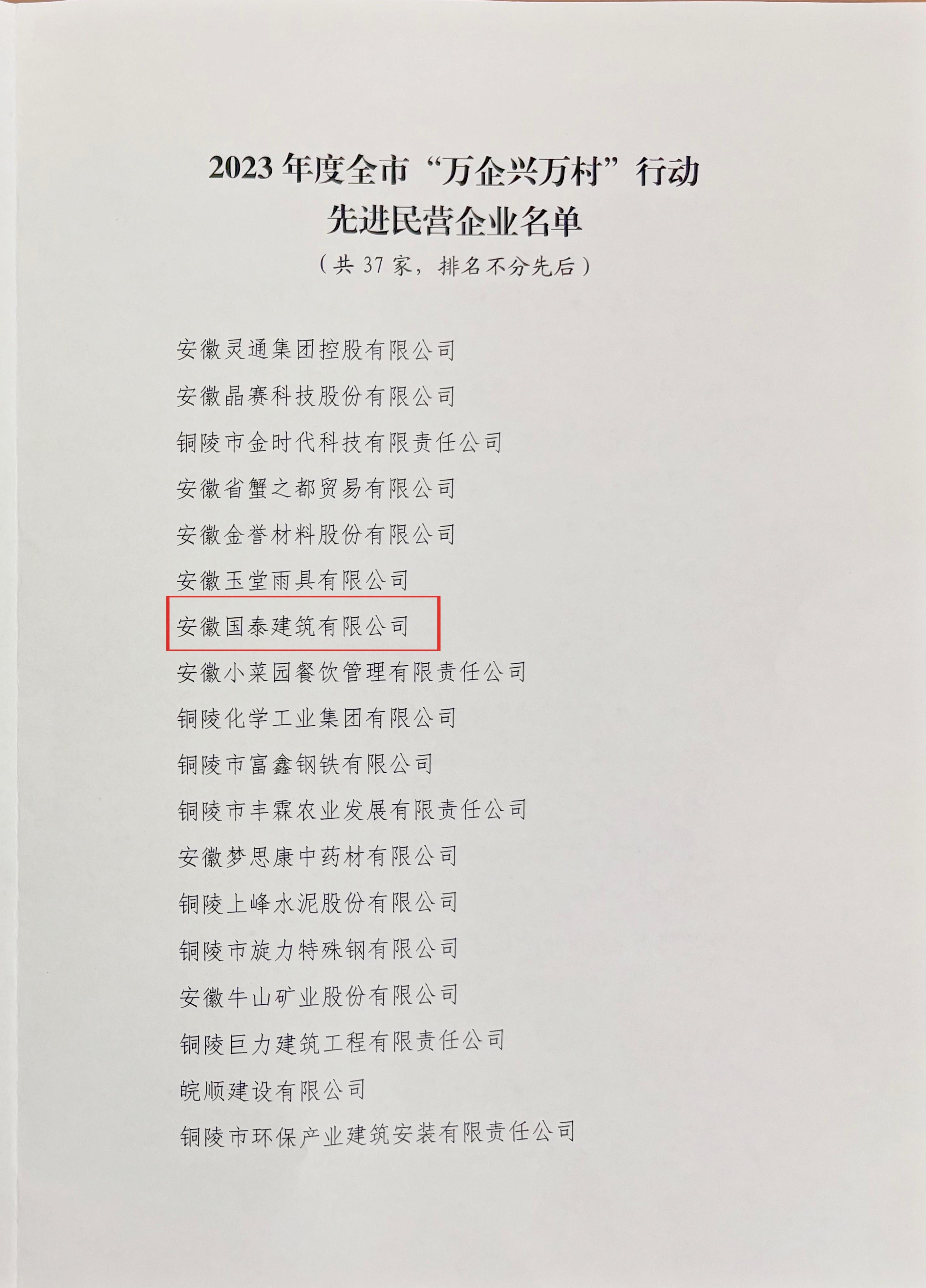 喜獲殊榮 | 國(guó)泰建筑榮獲2023 年“萬(wàn)企興萬(wàn)村”先進(jìn)民營(yíng)企業(yè)榮譽(yù)稱號(hào)